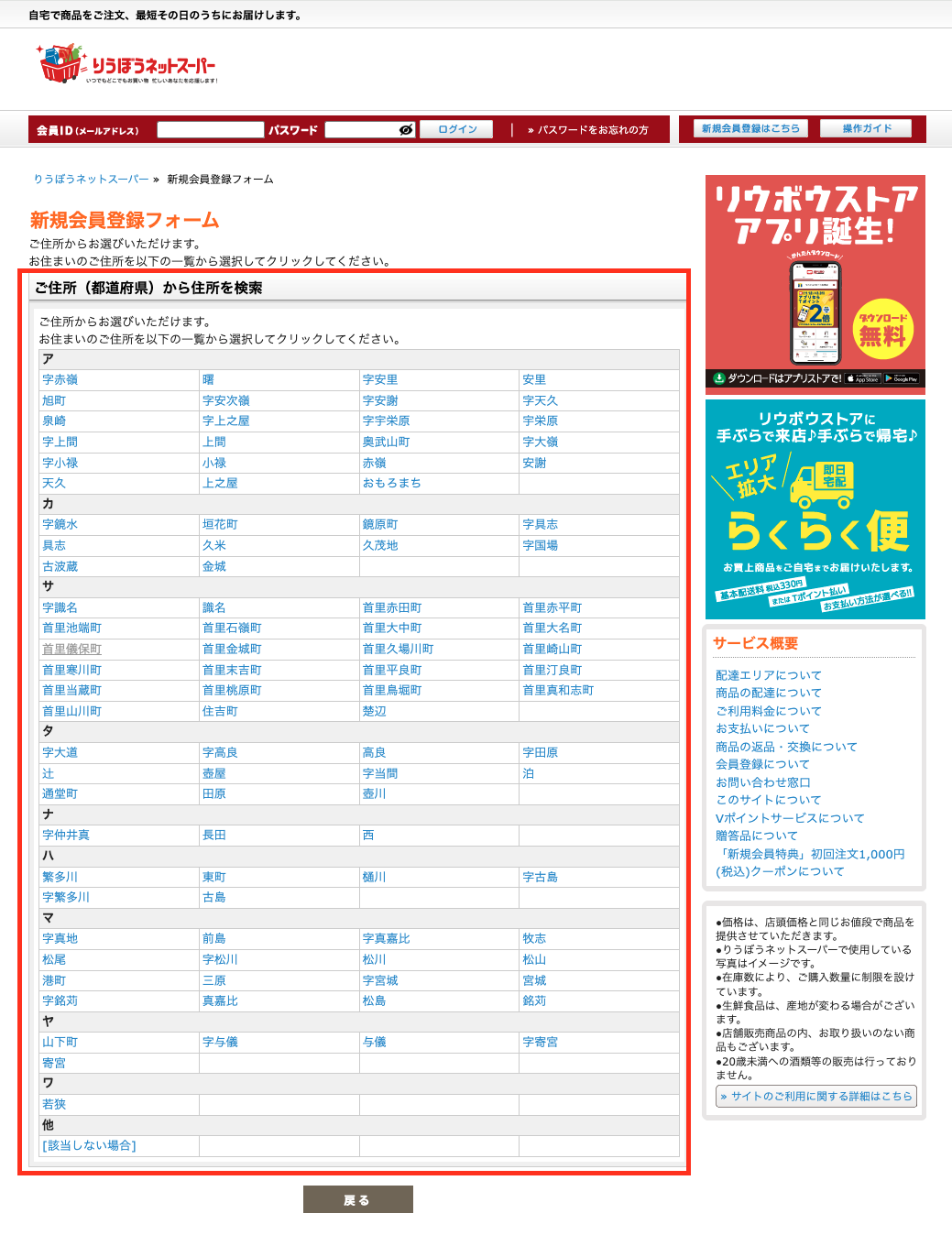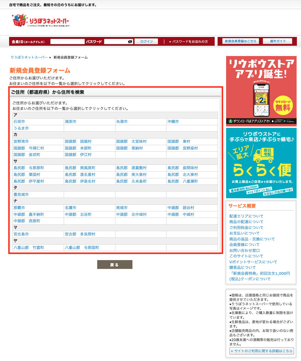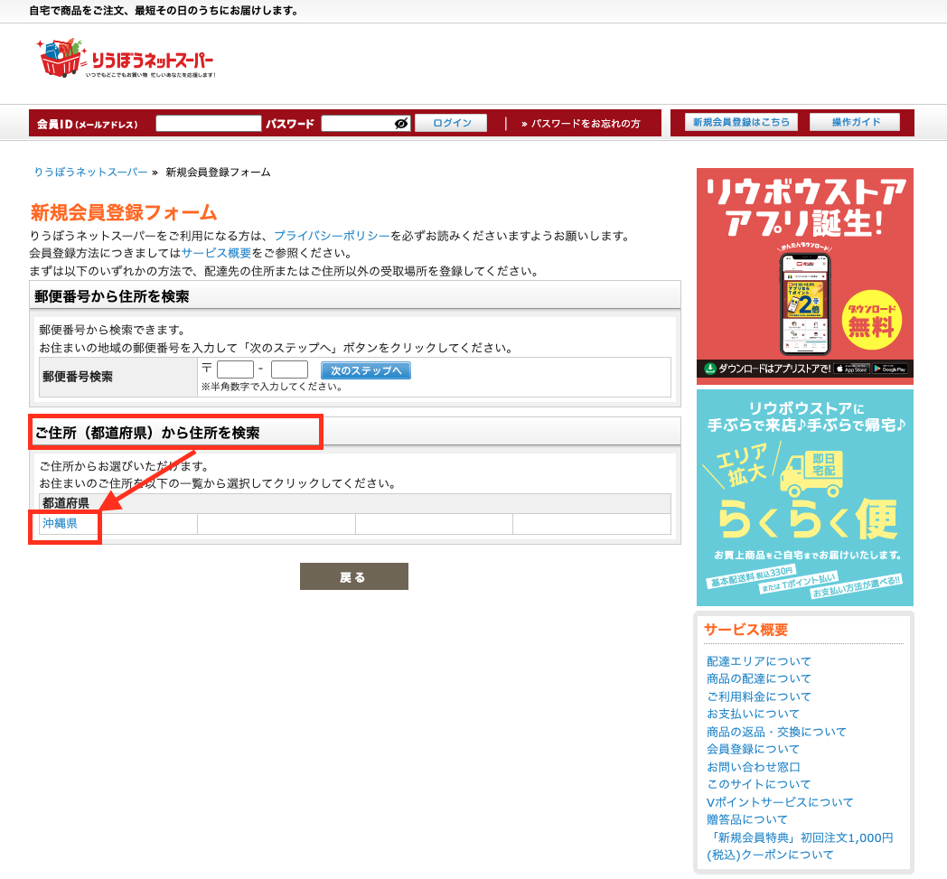 りうぼうネットスーパーの新規登録をしよう!