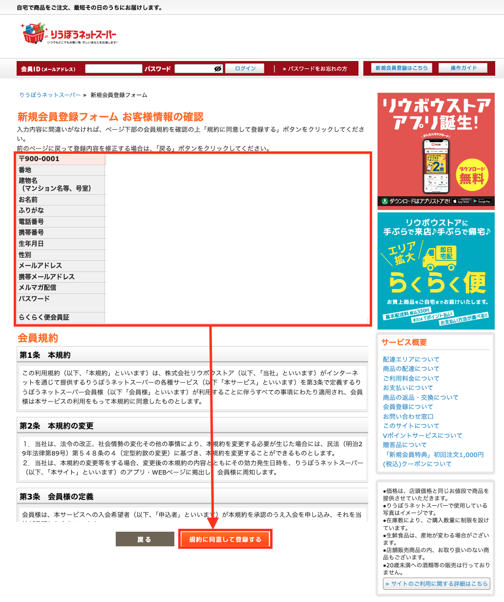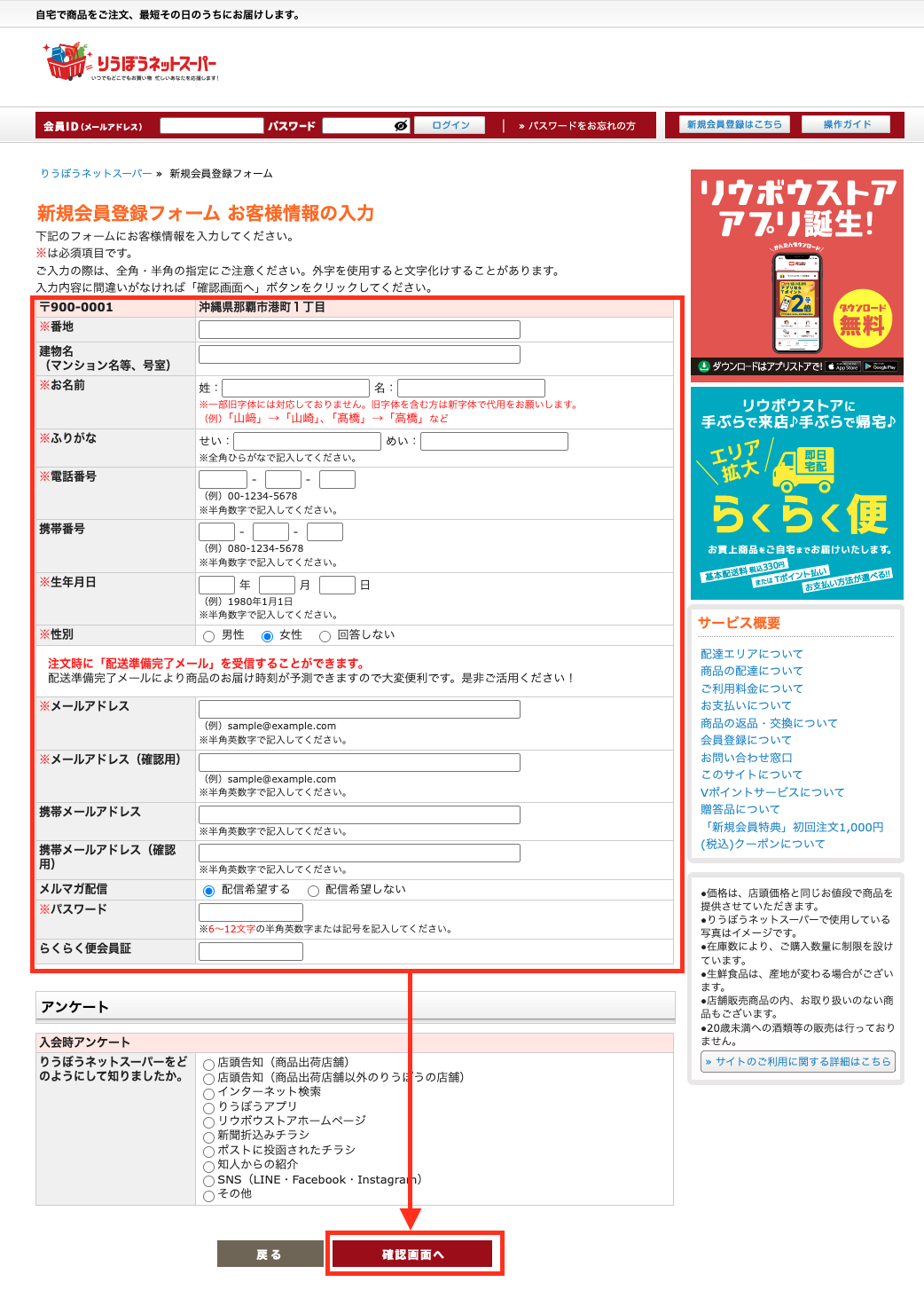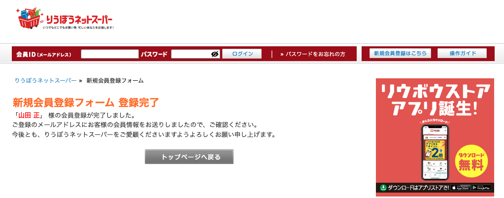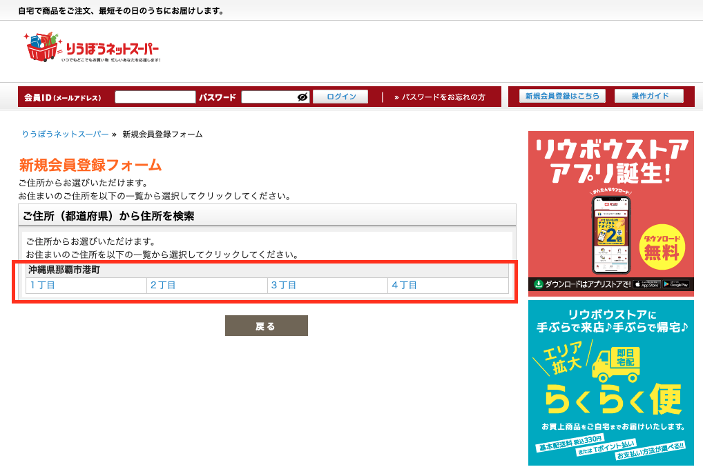 りうぼうネットスーパーの新規登録をしよう!