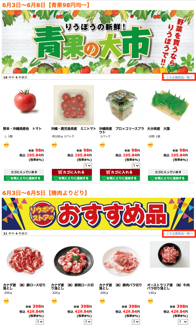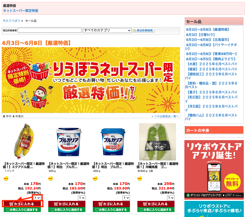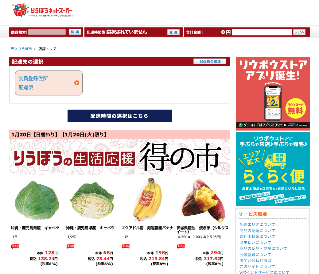 りうぼうネットスーパーの買い物手順