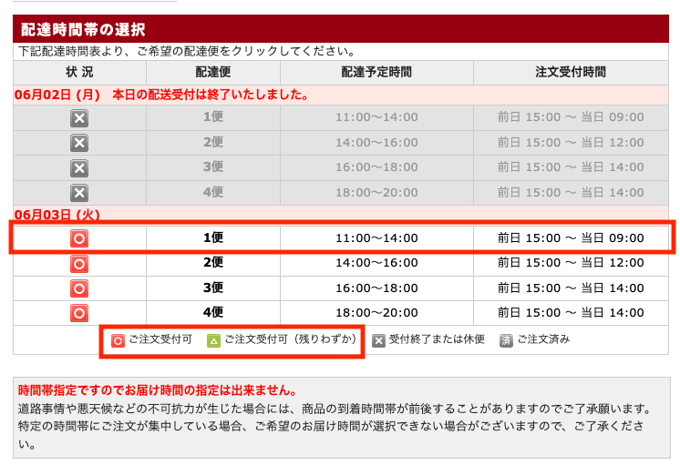 まずは配達時間を選択しよう!